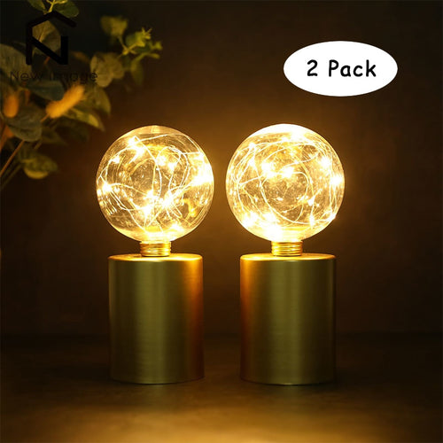 2pcs Gold Candle Holder Battery Powered Table Lamp 8 Inch Cordless
