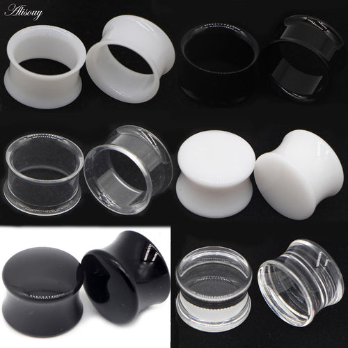 2pcs White Black Transparent Acrylic Ear Tunnel Plug Ear Gauges