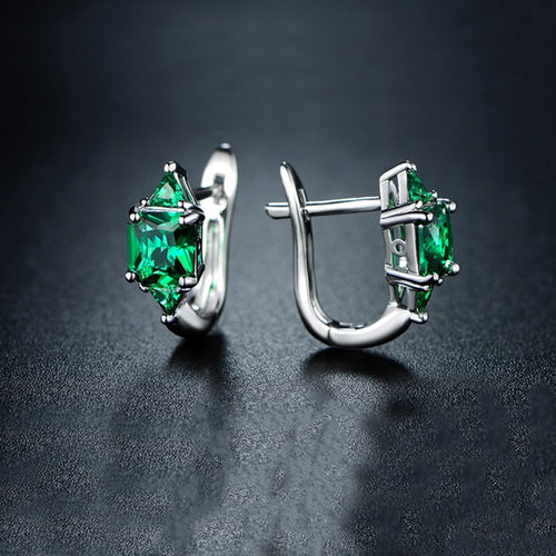 3.00 CTW Princess Cut Green Emerald Hoop Earrings