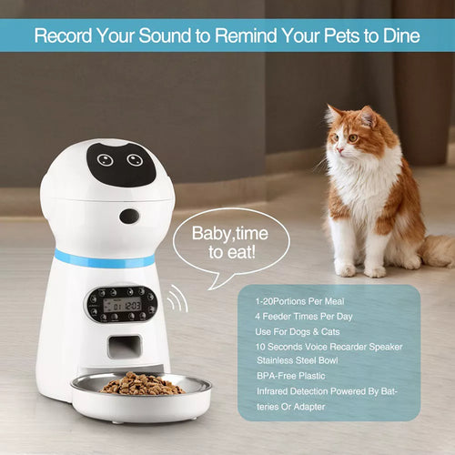 Automatic Pet Feeder Smart Stainless Steel Food Pan With Voice Record