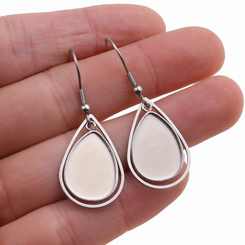 10pcs Stainless Steel Cabochon Fit 13x18mm Teardrop Dangle Earring
