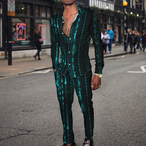 2 Pcs/Set Men Pants Suit Digital Print Colorful Colorfast Full Length