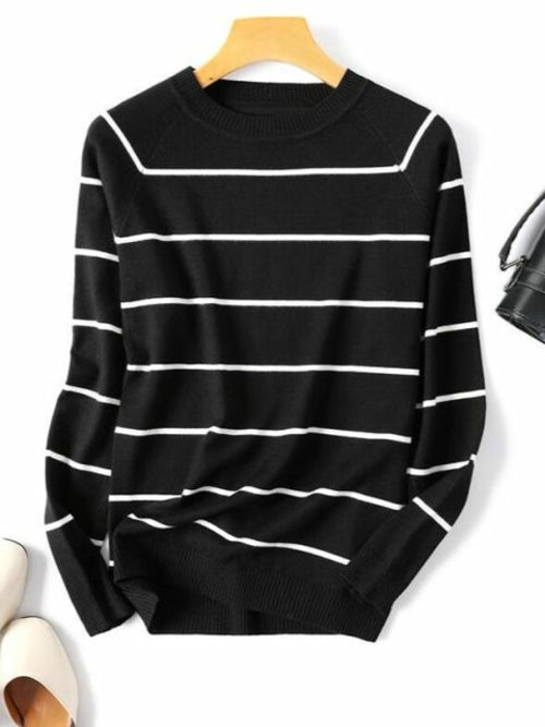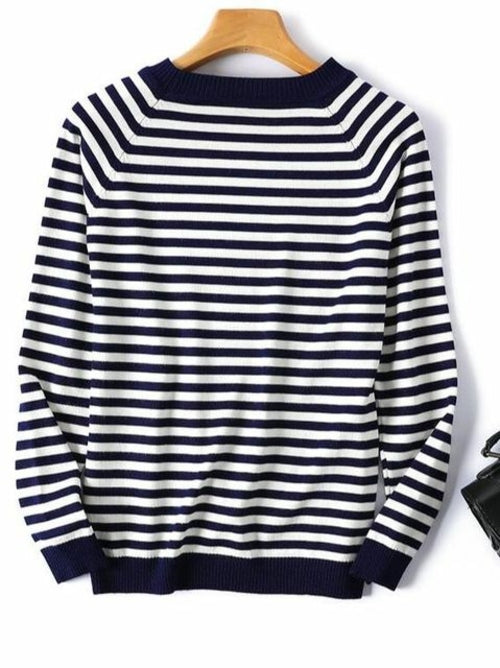 2022 Autumn Winter Long Sleeve Striped Pullover Women Sweater Knitted