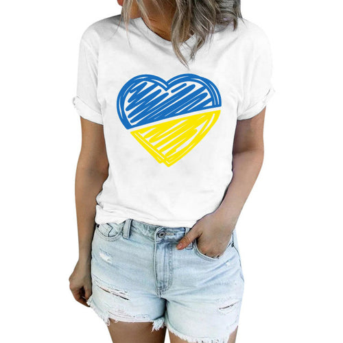 • Load image into Gallery viewer, 2022 Summer Women Tops Ukraine Print T Shirts Bule And Yellow Heart