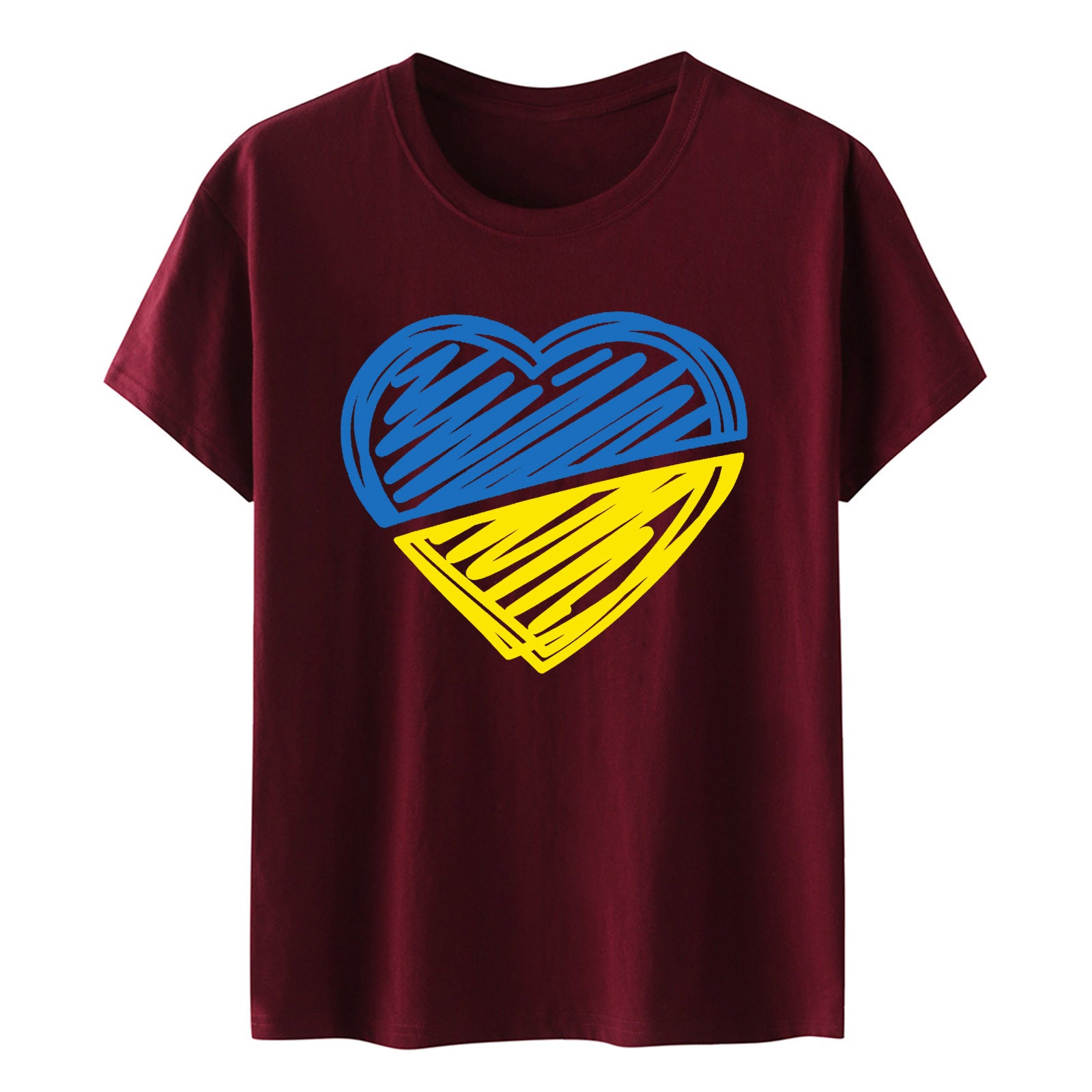 2022 Summer Women Tops Ukraine Print T Shirts Bule And Yellow Heart