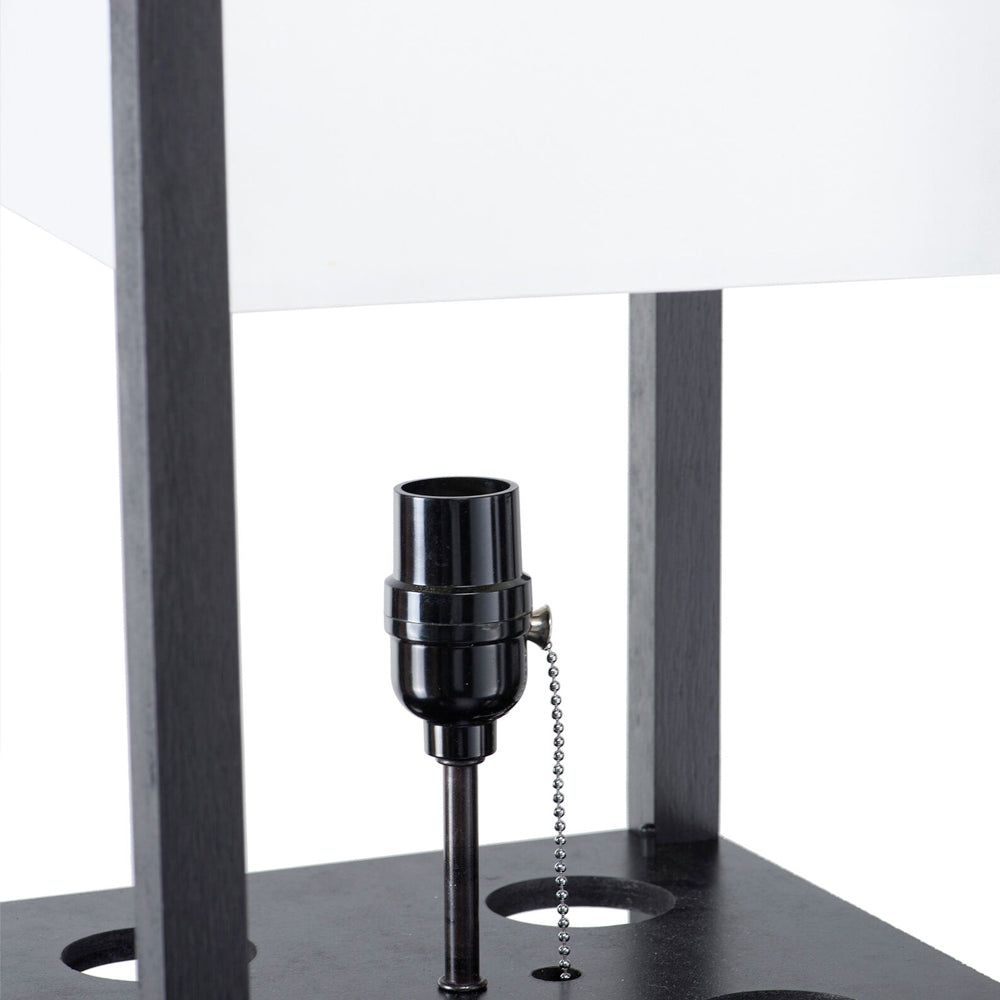 Contemporary Standing Post Lamp lighting comes in a set of 2 units, makes a great addition to any space in your home with wood shelving below for art or books and fabric shades.  Its sleek lines gives a modern effect.